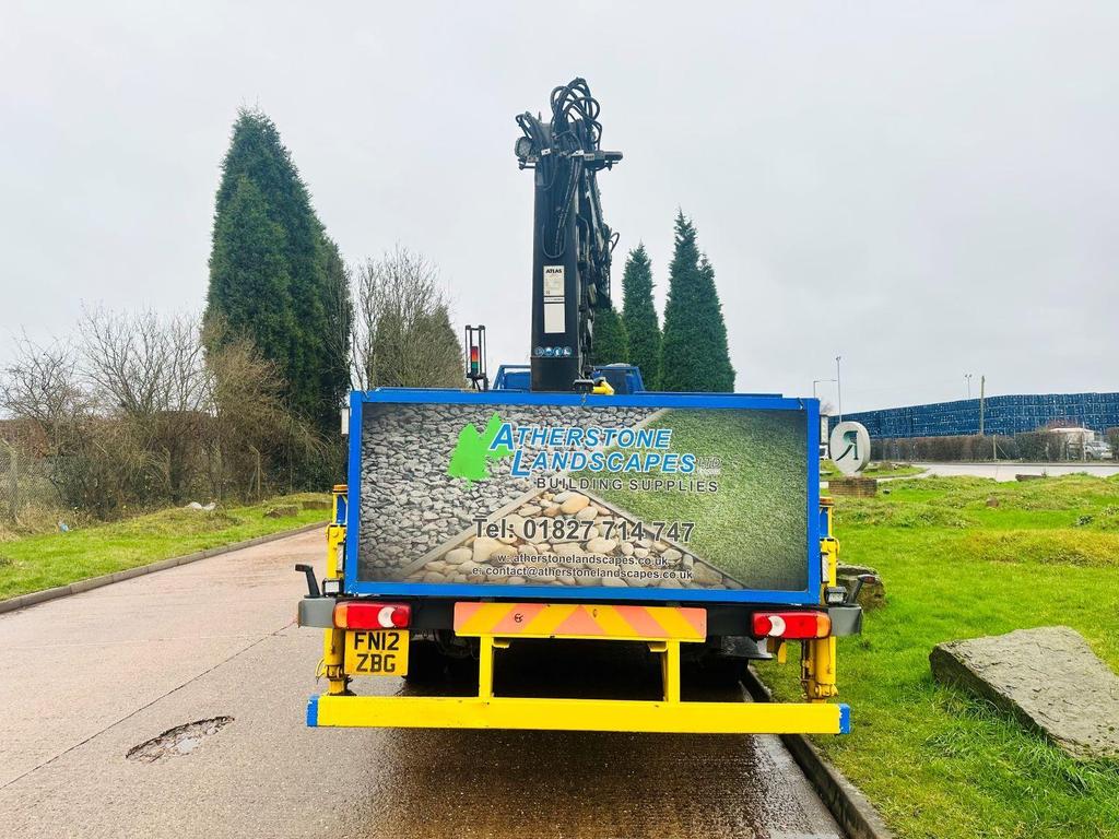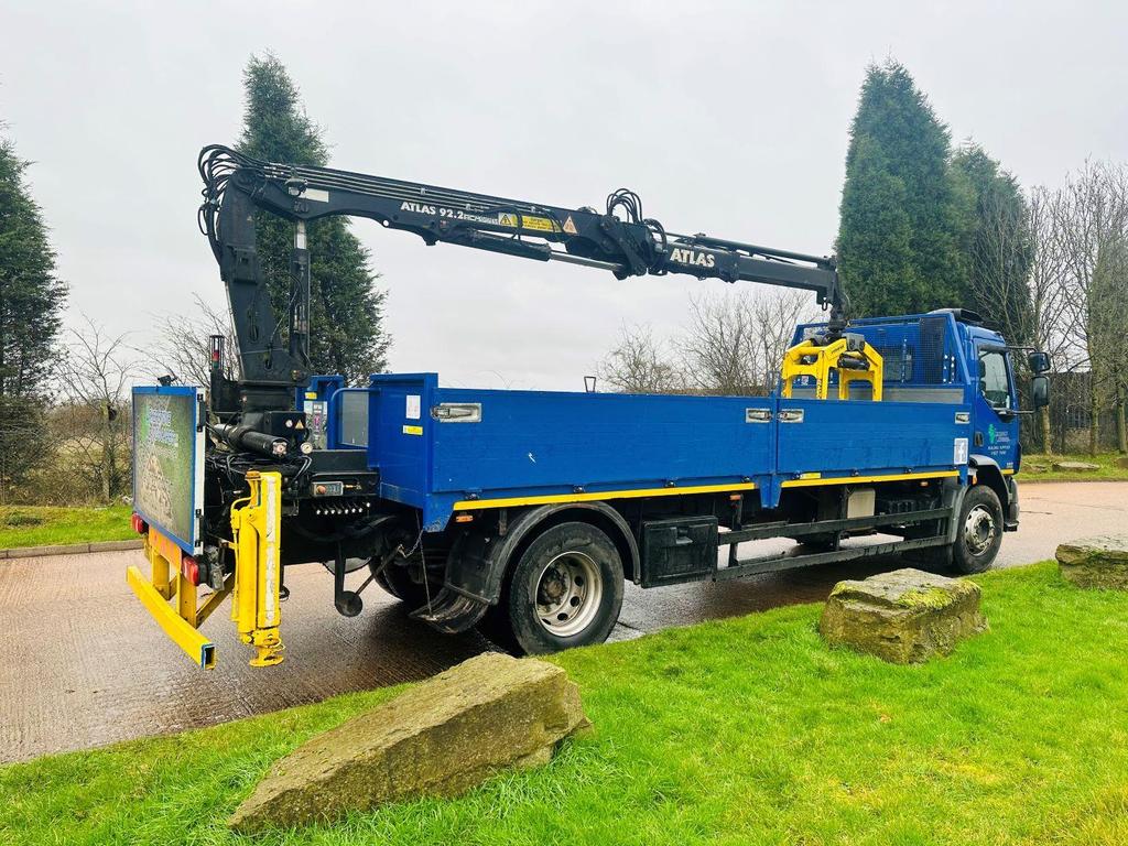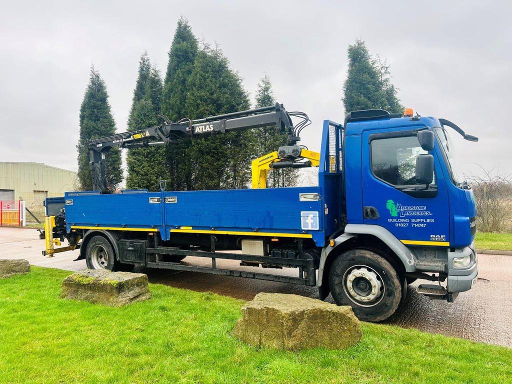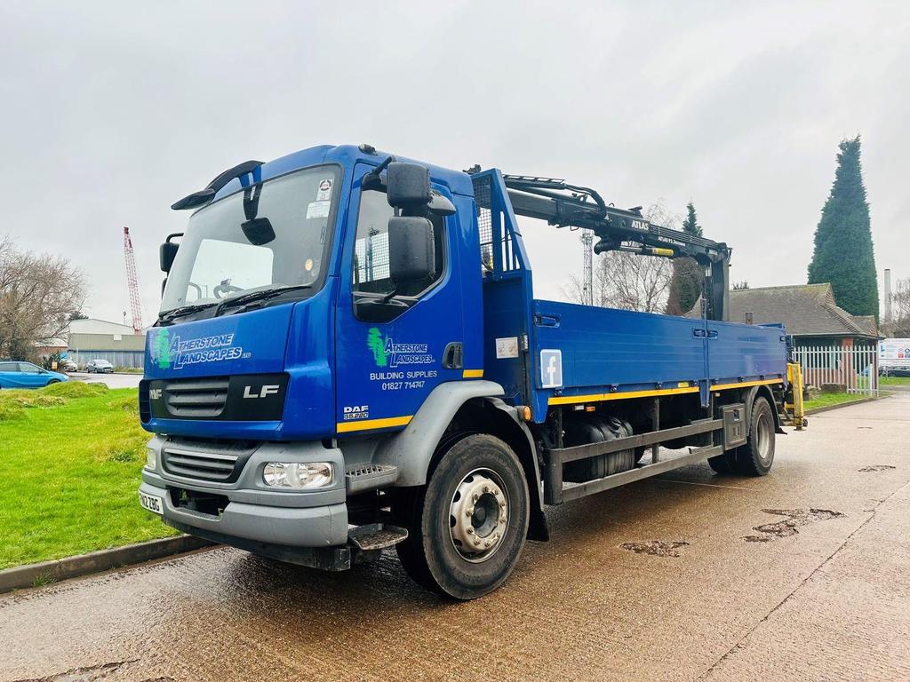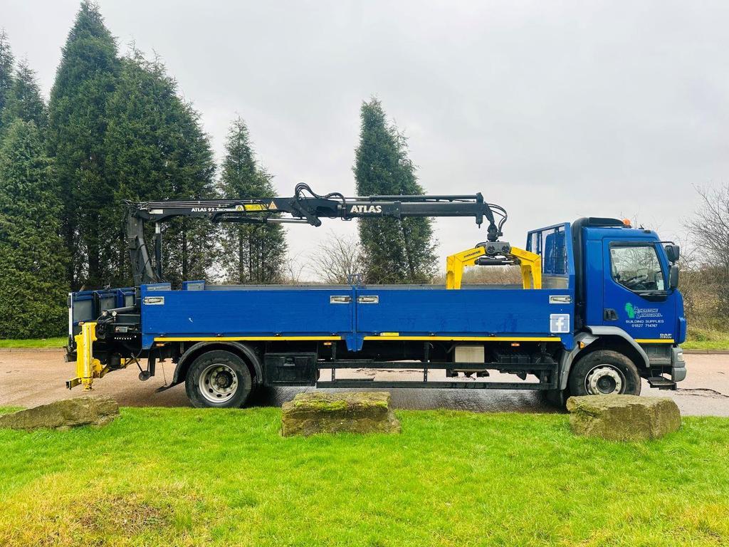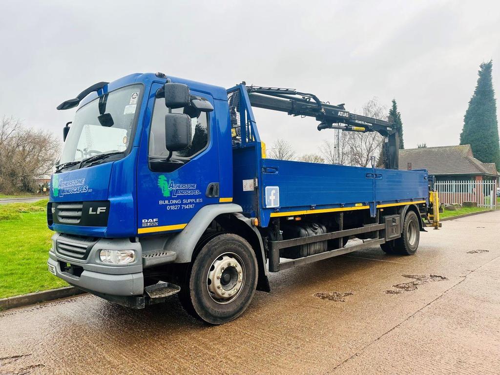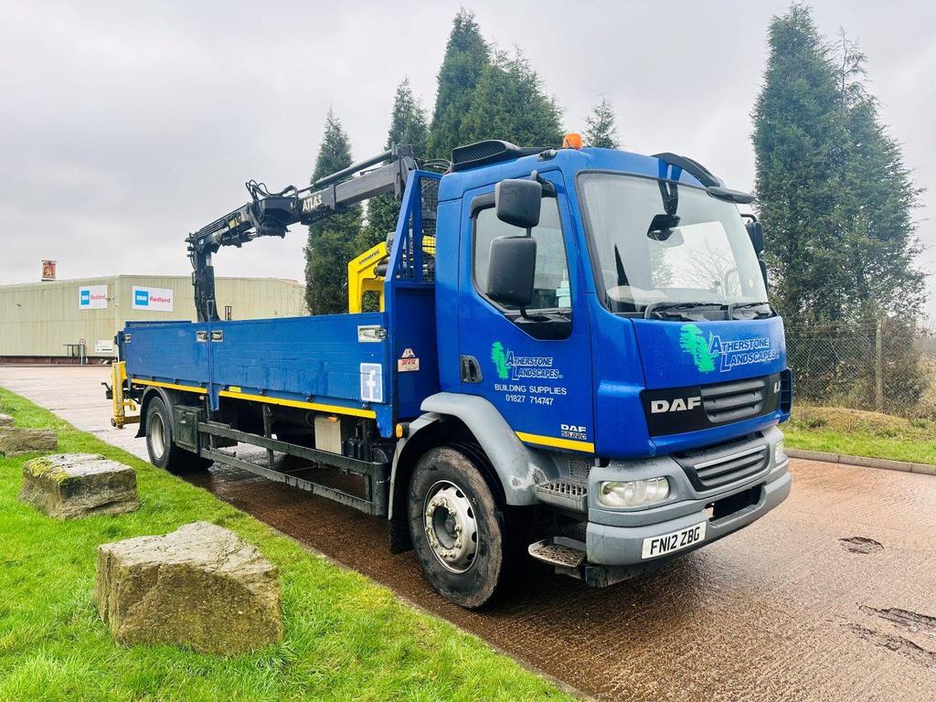 DAF FA LF 55 220 2012 (12) 18 TON, DAY CAB, 21′ DOUBLE DROPSIDE BODT, ATLAS 92.2 REMOTE CONTROLLED CRANE, 2 EXTENSIONS, CAMERA, MANUAL GEARBOX, CRUISE CONTROL, TOOL BOXES, BEACONS, AIR CON, STEERING WHEEL CONTROLS, ELECTRIC WINDOWS, CD, 205,000 MILES.