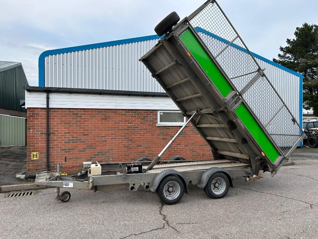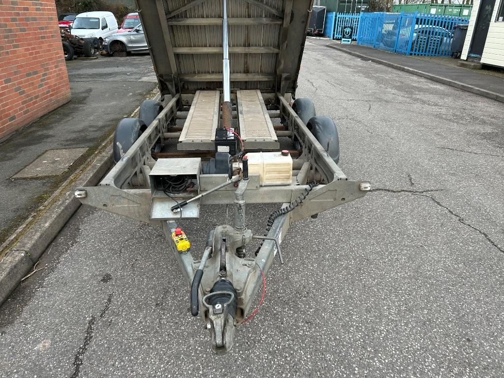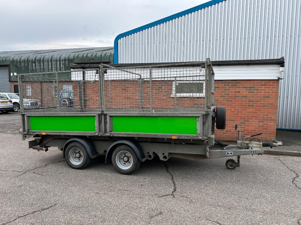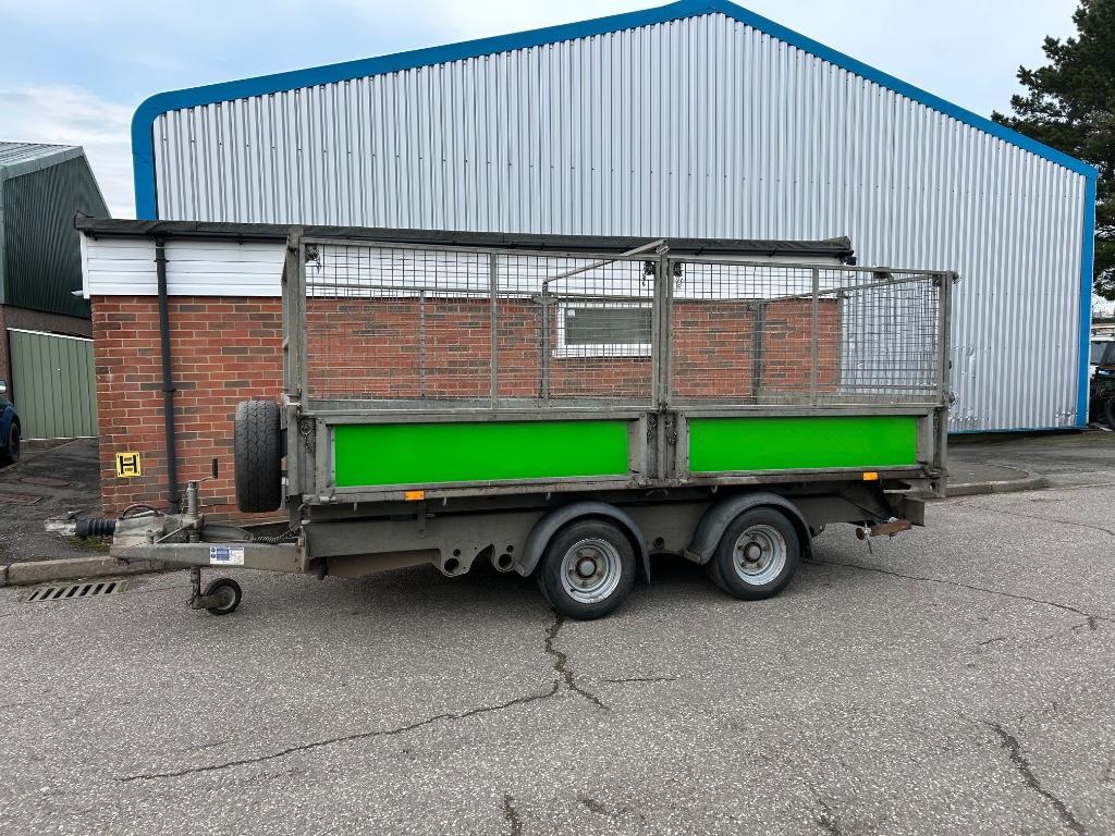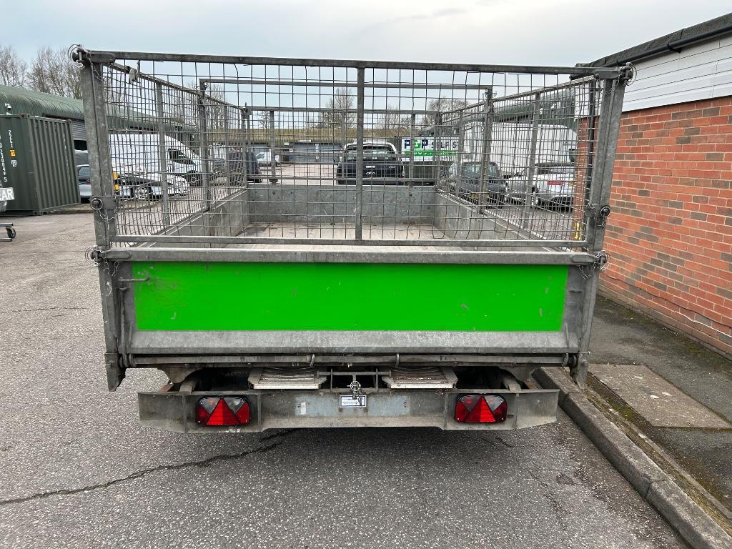 12’ x 6’ 6” tipping trailer with mesh sides and loading ramps. Trailer bought new in 2014 (one owner), always stored undercover. Excellent condition.